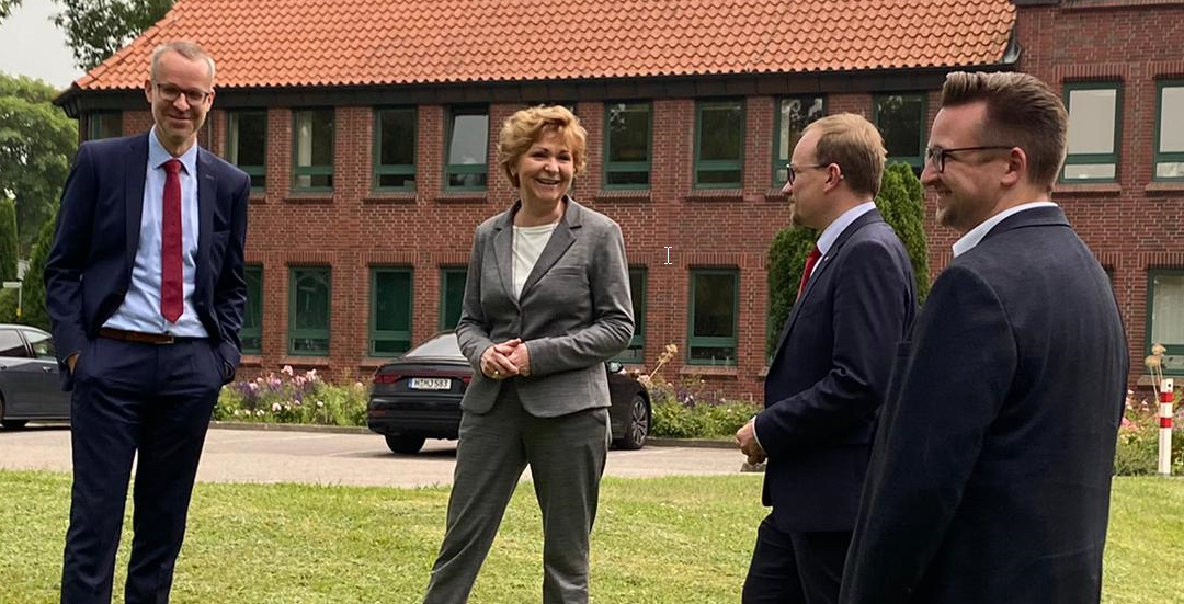 Im Rahmen ihrer Sommerreise stattete die niedersächsische Justizministerin Barbara Havliza dem Amtsgericht Geestland einen Besuch ab. Mit dem Direktor des Amtsgerichts Axel Döscher und Geschäftsleiter Lennart Busemann schaute sich die Ministerin zunächst den „digitalen“ Sitzungssaal an, der es den Richterinnen und Richtern künftig unter anderem erlaubt, in größerem Umgang Gerichtstermine als Videoverhandlungen durchzuführen. Im Anschluss informierte sich die Ministerin in einem Gespräch mit Mitarbeiterinnen und Mitarbeitern des Gerichts über die Folgen der Corona-Pandemie für das Amtsgericht Geestland. Einig war man sich dabei in der Einschätzung, dass die Justiz in Niedersachsen gerade auch aufgrund des großen Engagements aller Beschäftigten gut durch die Krise gekommen sei.